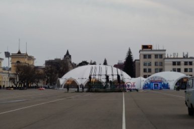 На площади также появится большая фотозона — огромный светодиодный подарок с красным бантом.