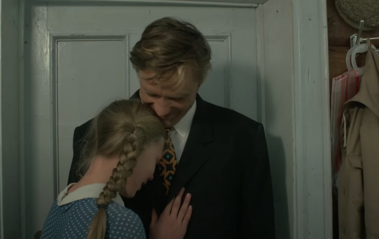 В сцене, где семья читает письмо от Василия, мебель словно живет своей жизнью — стол сначала стоит у телевизора, а затем резко перемещается ближе к серванту.