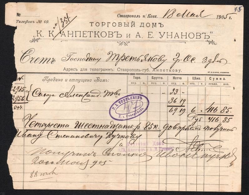 Образец пая Товарищества на паях «К.К. Анпетков и А.Е. Унанов» в 1000 рублей на предъявителя. Фото: Ставропольский государственный музей-заповедник