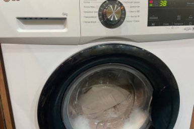 После постирайте носки в стиральной машине. Для этого выберите режим стирки при температуре 40C, при желании можно дополнительно использовать еще немного пятновыводителя.