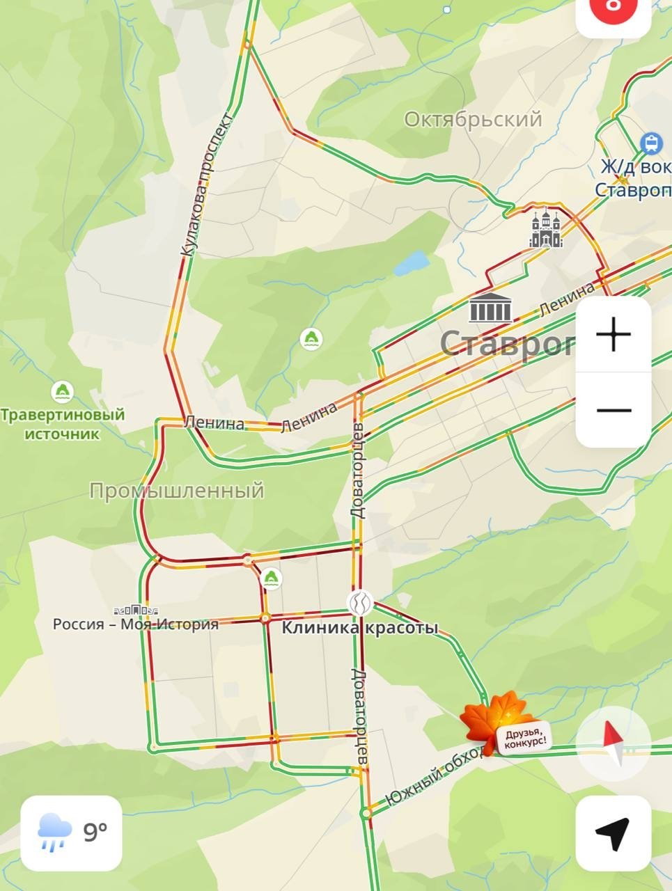 Заторы наблюдались на проспектах Российский, Кулакова, на улице Шпаковской, Тухачевского, Ленина, Мира, Доваторцев.