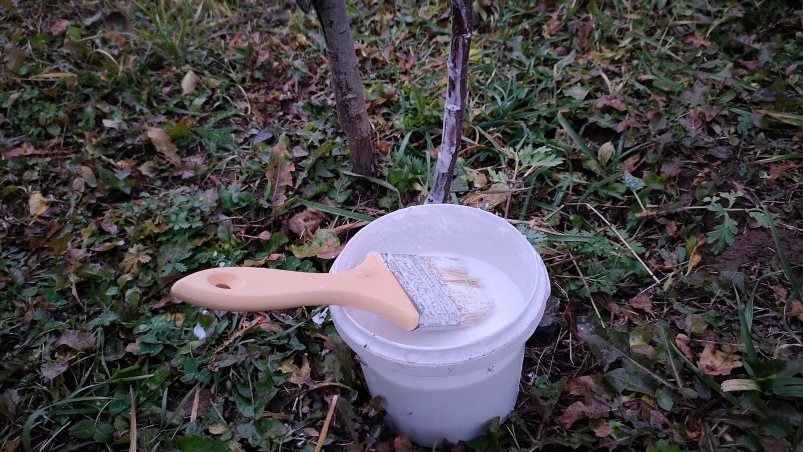 Деревьям вместо побелки — самое то: 15 минут — и кора защищена от морозобоин и грызунов