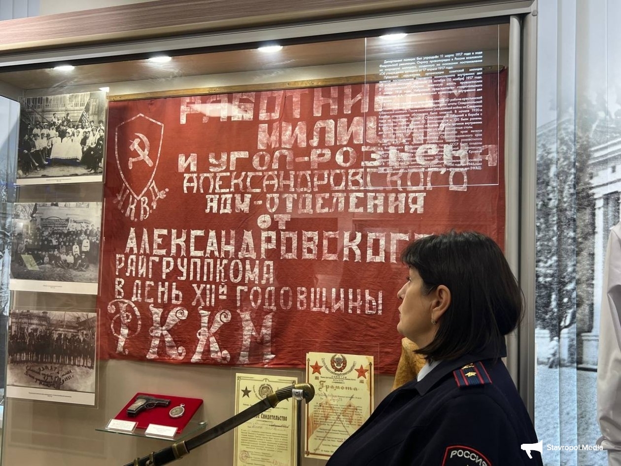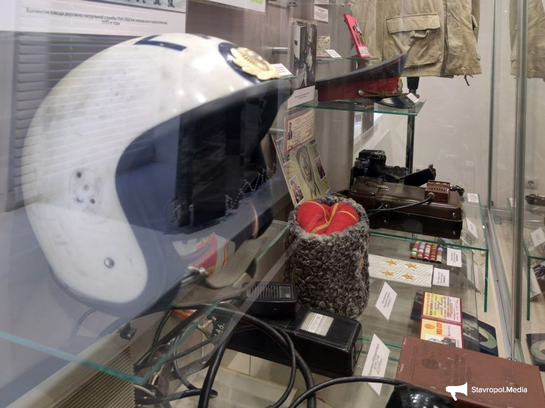 Как рассказала начальник эскпозиции КЦ ГУ МВД России по Ставропольскому краю Анжела Терпогосова, экспонаты впервые собрали в 80-х годах ХХ века. Долгое время музей перемещался по разным корпусам ведомства, пока не обрёл постоянное помещение в 2018 году. Находится он в историческом здании, так что внимание приковывает здесь даже лестница, ведущая к выставочному залу. Впрочем, и сама экспозиция не уступает пути к ней: артефакты искали в музеях и в семьях полицейских.