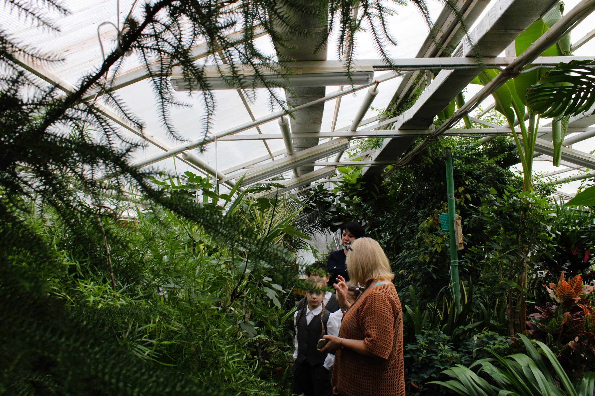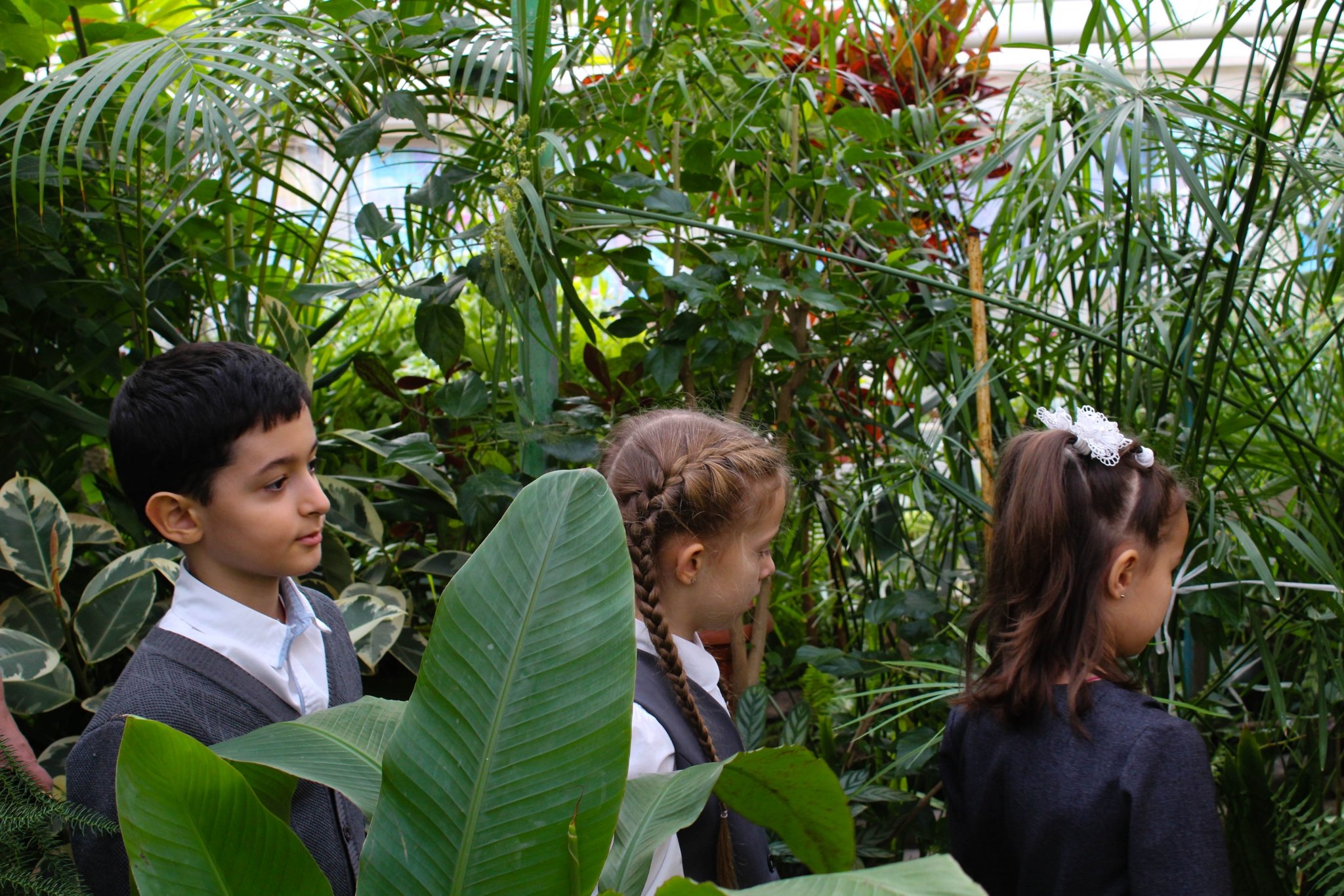 Внимание ребят привлекают экзотические растения, которые можно расробовать на вкус — например, монстера и бананы.