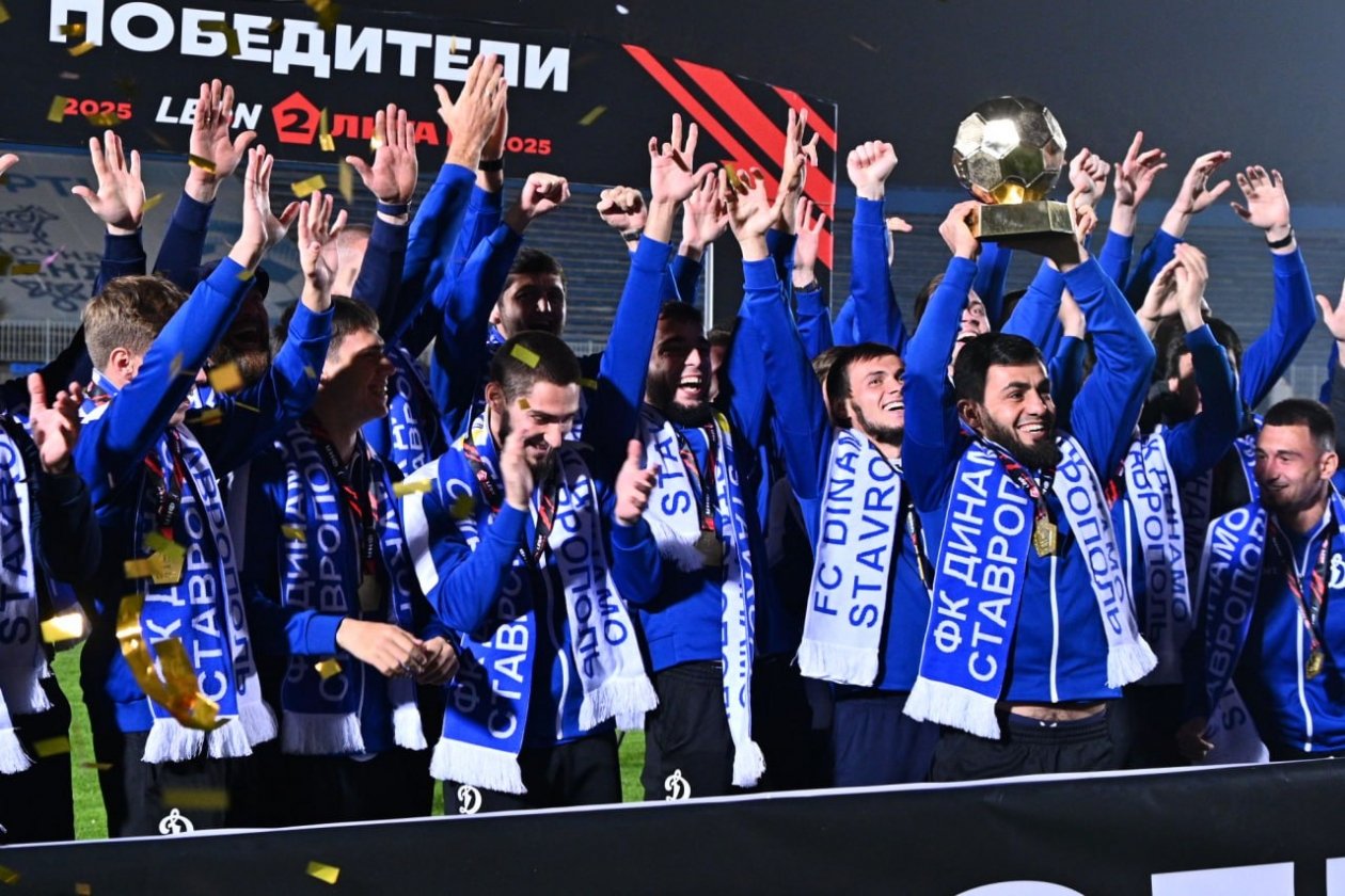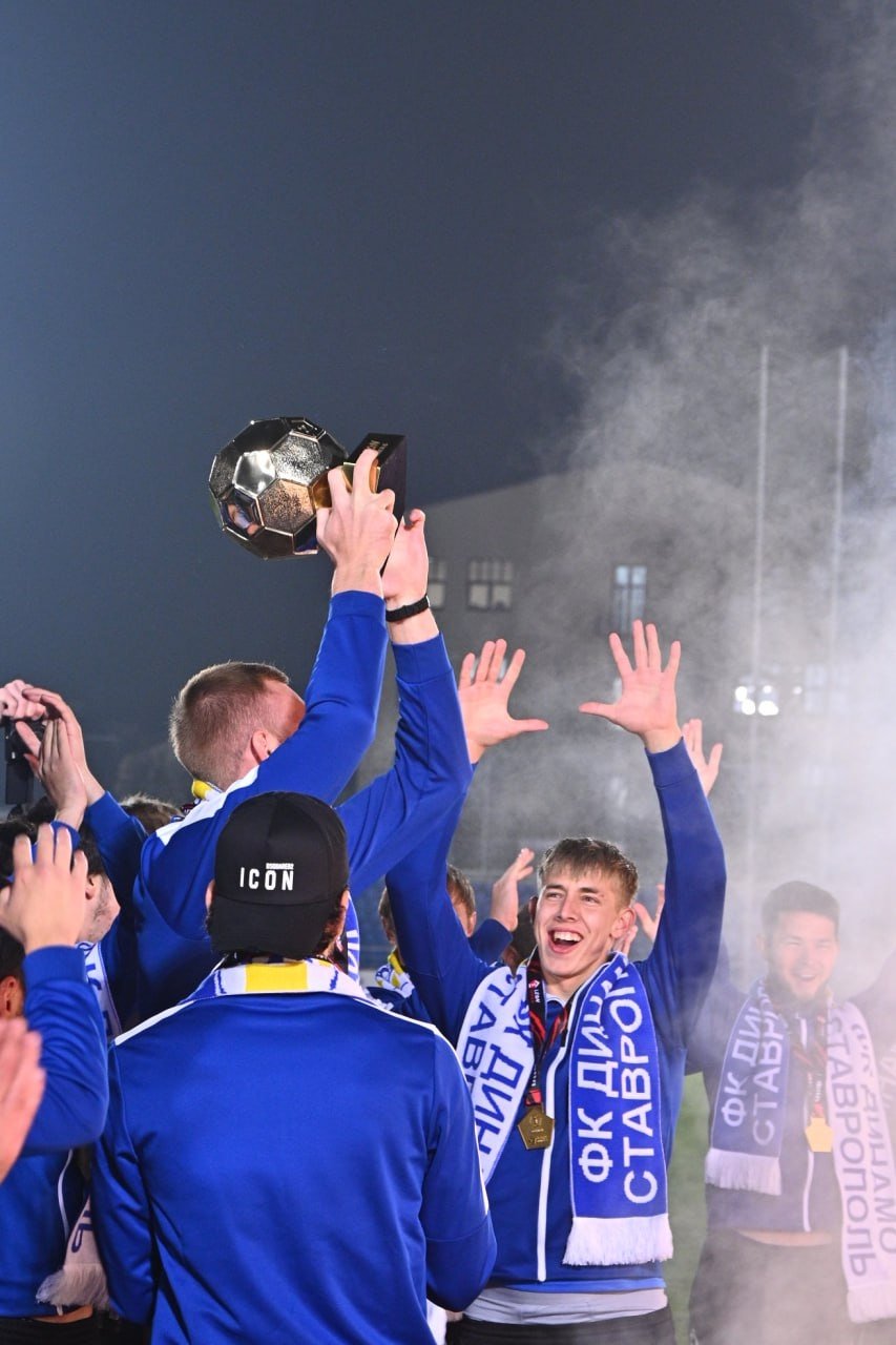 Stavropol.Media, 26 ноября. Кубок победителя второй лиги Б чемпионата России по футболу и золотые медали получили игроки "Динамо Ставрополь". Награждение прошло на стадионе "Динамо", сообщается в Telegram-канале (18+) клуба.