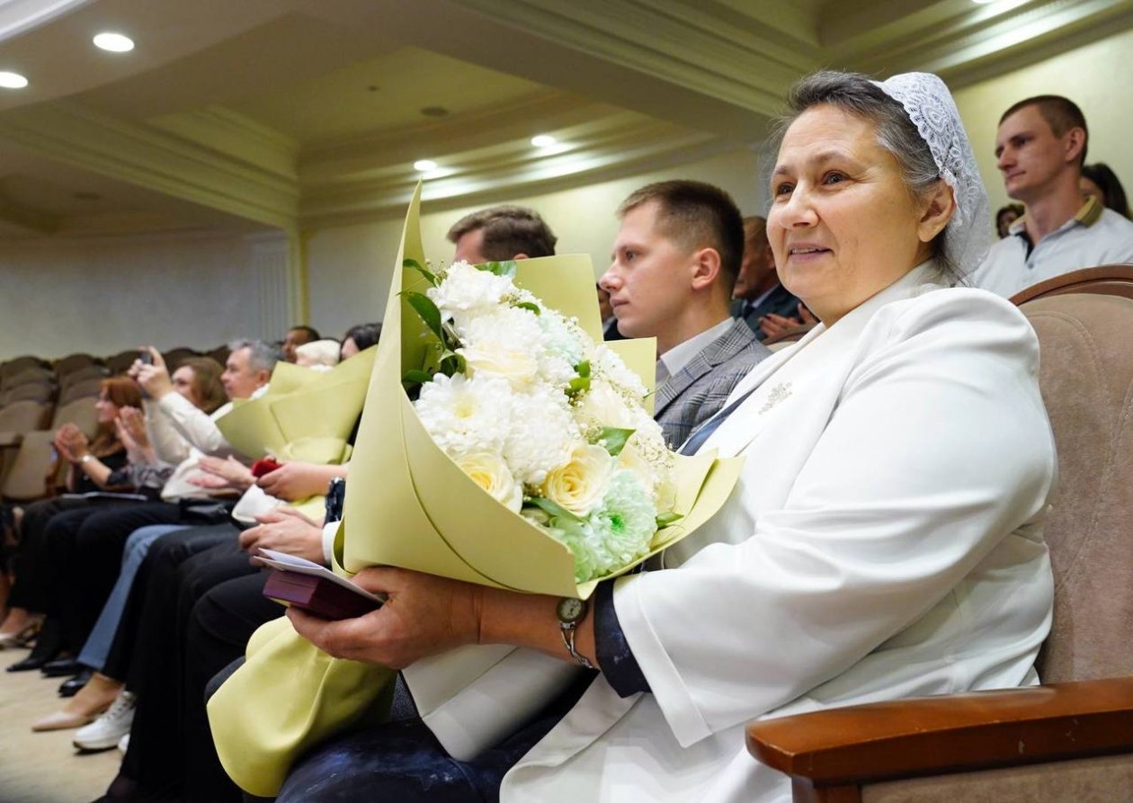 Ирина Широбокова из Ставрополя стала полным кавалером медали. Вместе с мужем они воспитали 12 детей и трех внуков. Все они — талантливые музыканты, отметил глава региона.