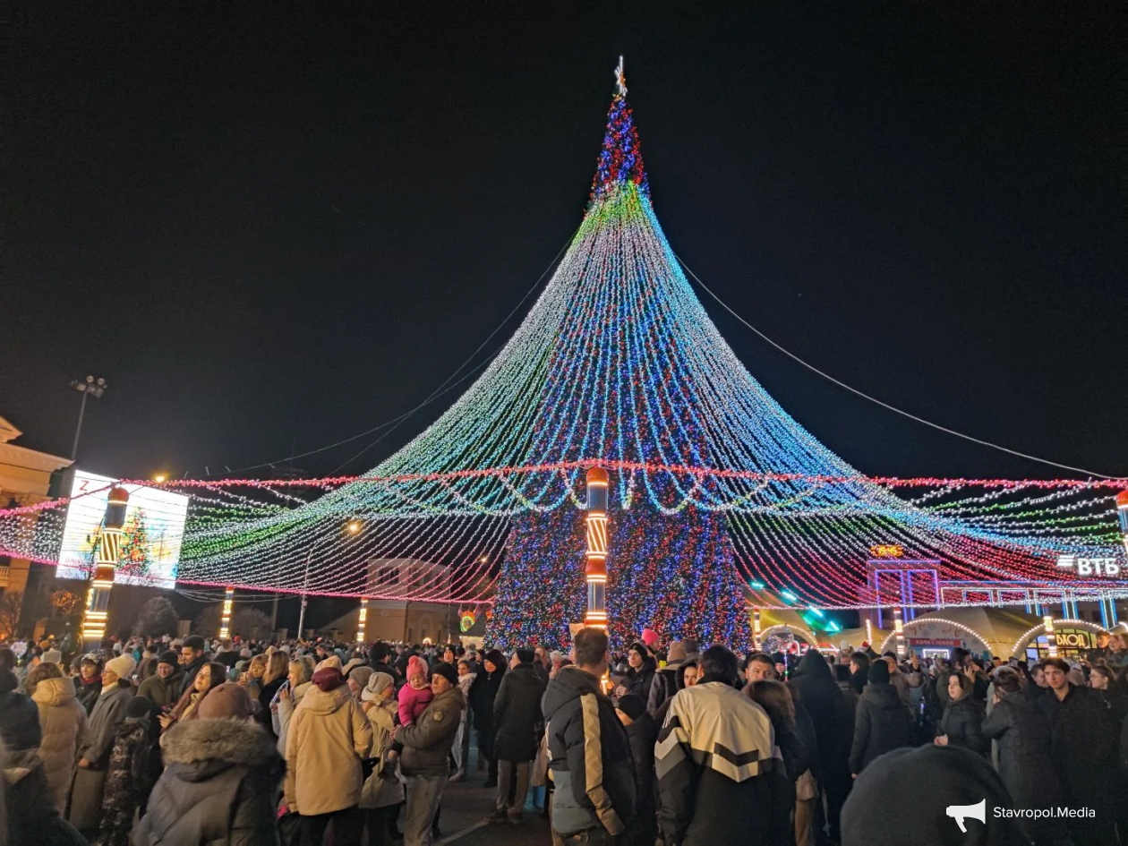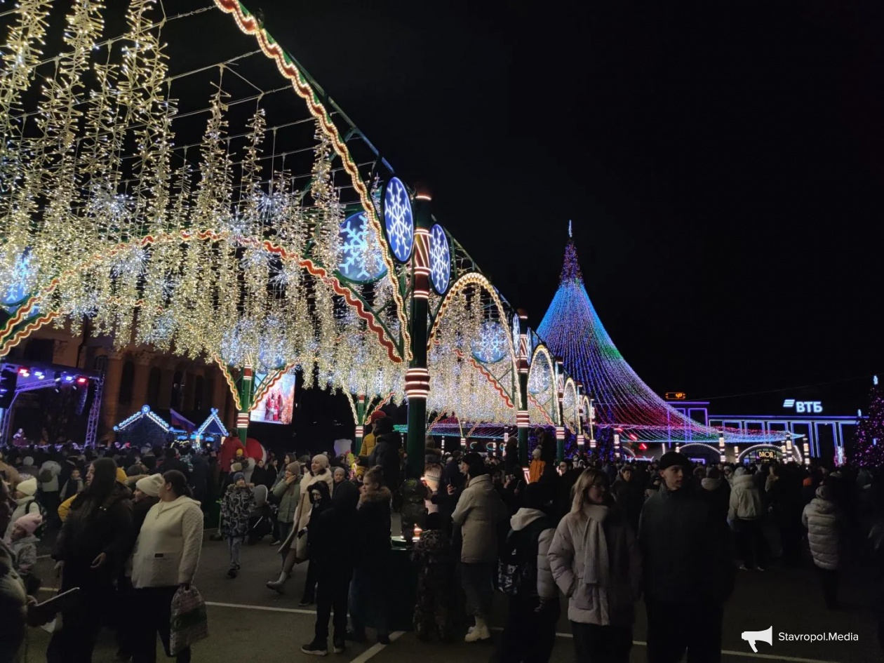 Этой зимой в городе появились новые праздничные объекты. Самую высокую в Ставрополе ель украсил шатер из гирлянд. Также смонтировали световой тоннель и установили огромные фонари, внутри которых можно сделать памятные фотографии.
