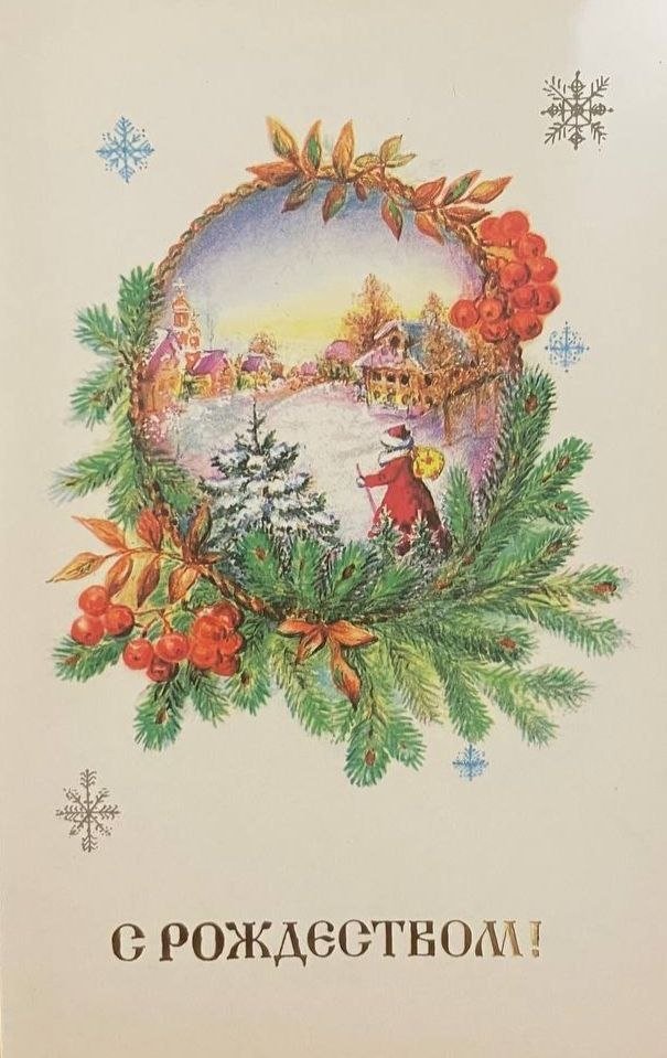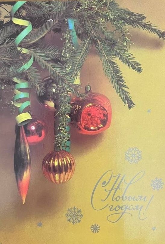 Как рассказала Евгения, карточки разных лет, но большинство из них датируются 80-ми годами прошлого века. На некоторых из них изображены модные тогда фотореалистичные новогодние натюрморты — новогодние стеклянные игрушки в них соседствуют с нарядными искусственными розами и бумажными гирляндами. На одной можно заметить снежный рождественский пейзаж из русской деревни. Есть и открытка, поздравляющая с Новым годом Петуха или более поздние карточки с сюжетами, типичными для конца 90-х.