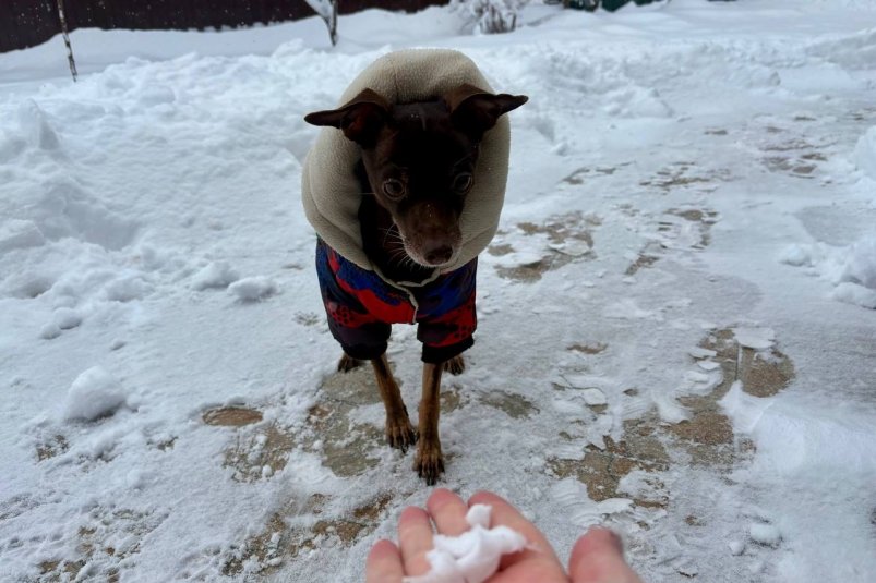 Житель Ставропольского края, той-терьер по кличке Тимоша, наконец-то дождался настоящей зимы. Как и в других регионах России, не было ни намека на снег. Однако в последние дни уходящего 2026 года на юге страны произошло настоящее волшебство.