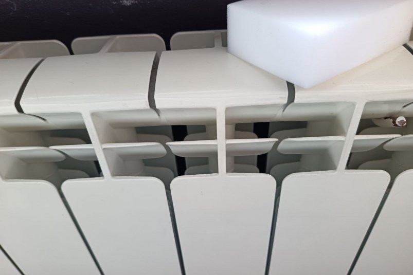 Возьмите чистую губку для посуды. Хорошо намочите ее под краном и слегка отожмите, чтобы с нее не капало. Повесьте губку над батареей или положите ее прямо на радиатор. Можно использовать прищепку или зацепить за декоративный экран.
