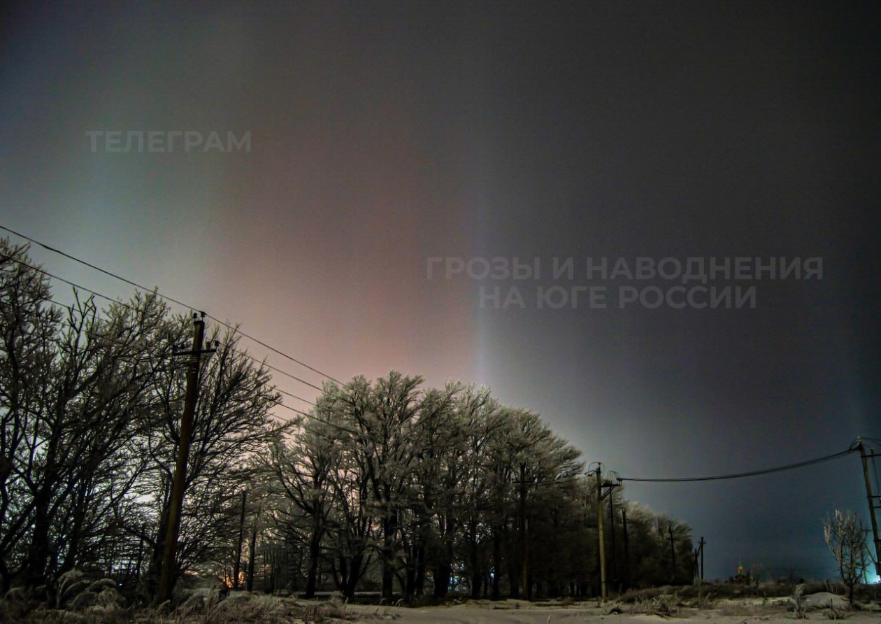 Это не первые световые столбы, которые ставропольцам довелось увидеть в этом году. Аналогичное оптическое явление наблюдалось 3 января.