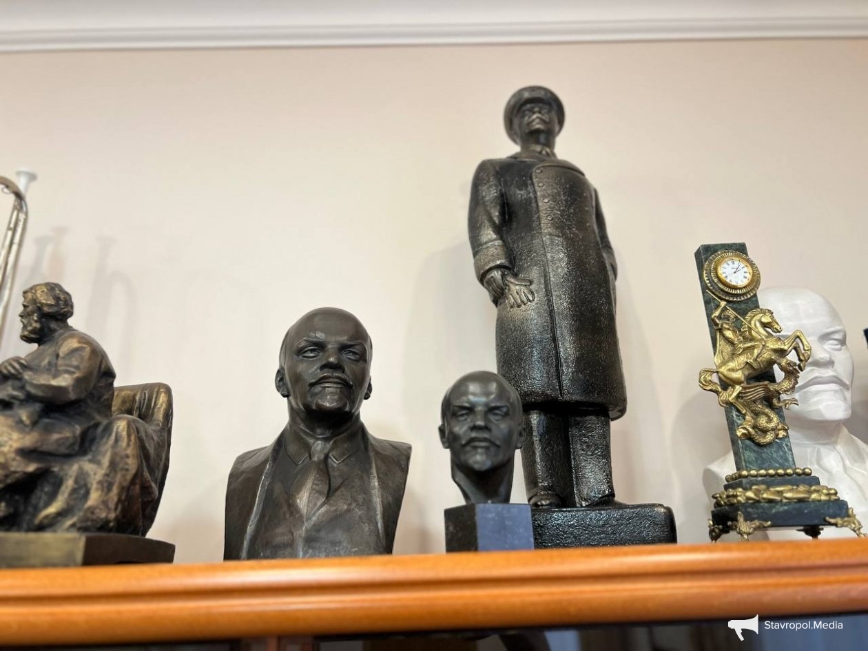 "Этот бюст Ленина мне подарил житель Зеленокумска за помощь в восстановлении, а этого Сталина — 10-летняя девочка, которой мы помогали. Маленький бюст вождя — подарок от заместителя руководителя аппарата правительства края Любови Маковской в селе Александровском. Некоторые дарили на день рождения, а какие-то — просто так. Горн пионерский мне вручили в детском саду, в котором мы помогали делать ремонт. Вместе с ним ещё и барабан", — с теплотой вспоминает Виктор Иванович.