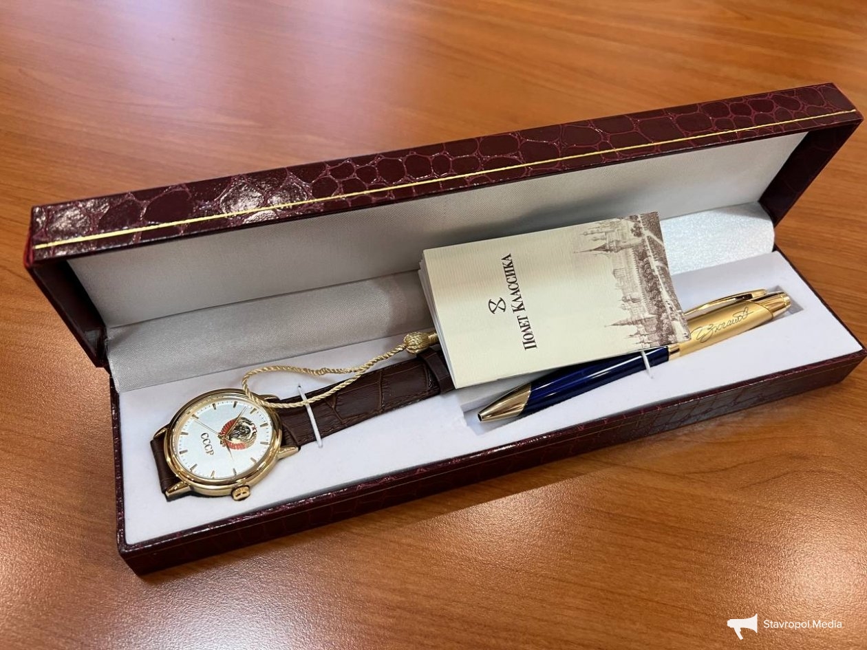Часы с Георгием Победоносцем, врученные Виктору Лозовому заместителем министра обороны России. Фото: ИА Stavropol.Media