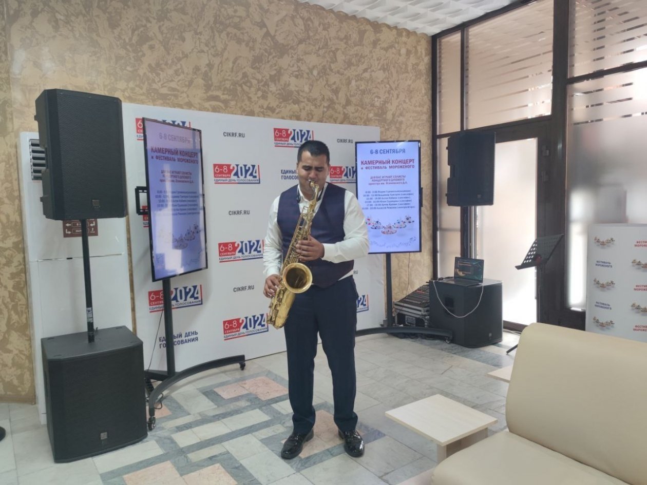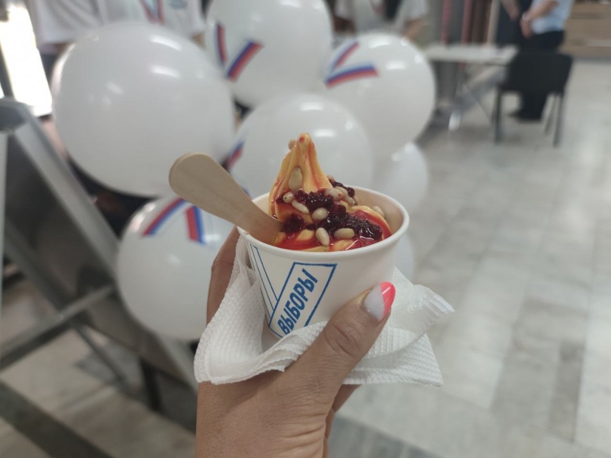 На выборах 2024 года можно было послушать концерт саксофониста и попробовать мороженное. Фото: Елена Гиневская, ИА Stavropol.Media