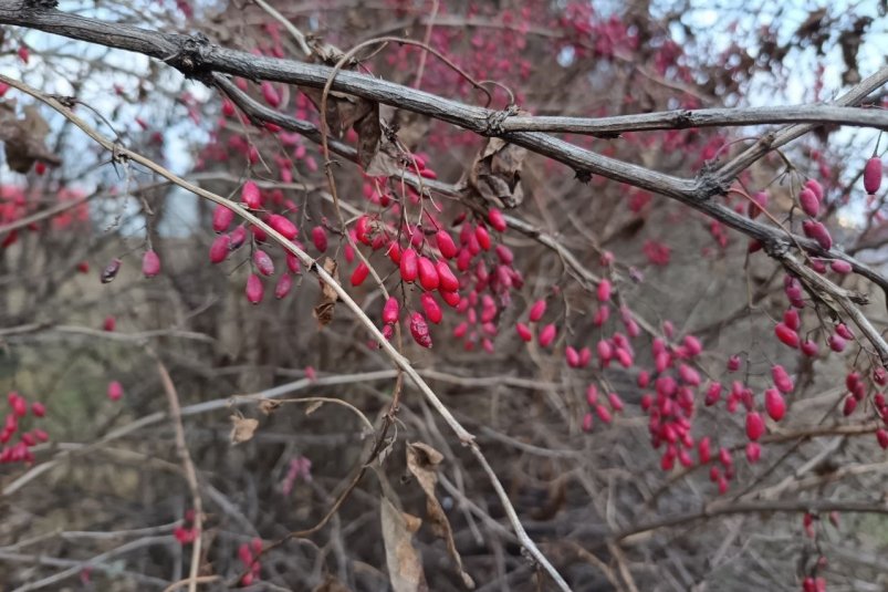 Весной цветет золотистыми кисточками, летом радует насыщенной пурпурной, изумрудной или золотистой листвой (в зависимости от сорта). Осенью усыпан ярко-красными продолговатыми съедобными ягодами. Их часто добавляют как приправу к мясу.