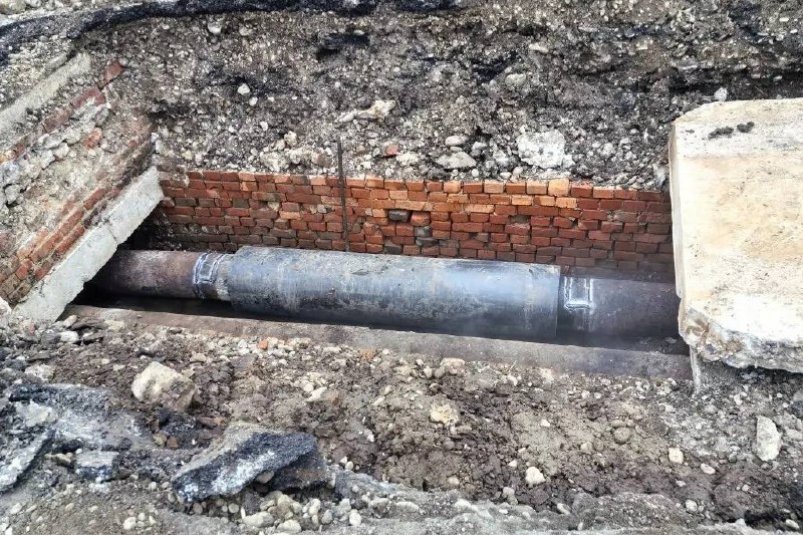 Сварочные работы на тепломагистрали завершены. Участок трубопровода вварили в систему.