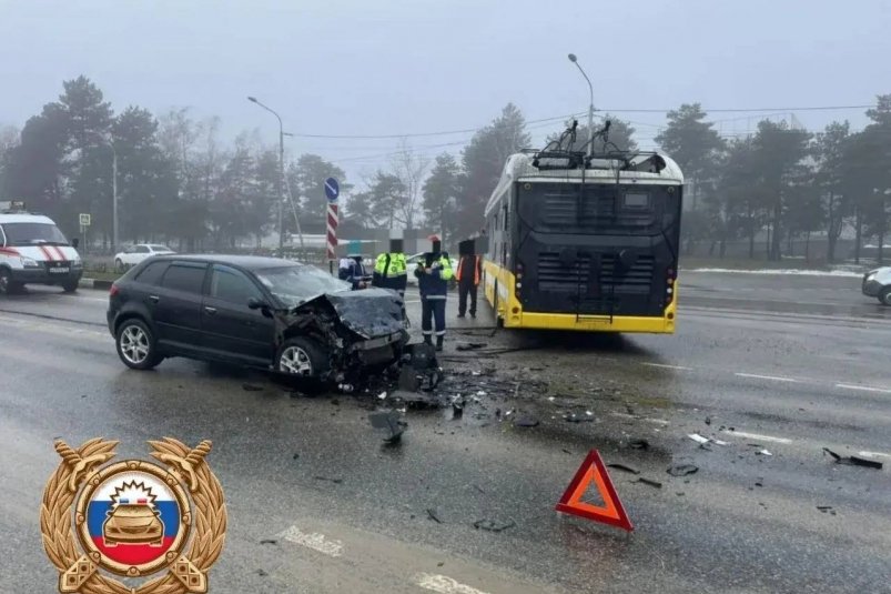 ДТП произошло сегодня около 10.30. По предварительным данным, водитель троллейбуса при повороте налево не предоставил преимущество в движении и допустил столкновение с Audi.