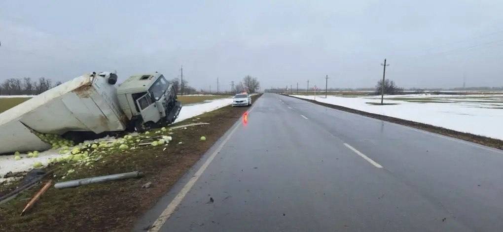 КамАЗ с капустой на большой скорости вылетел с трассы в Апанасенковском округе Ставрополья. Водителя с травмами забрали в больницу, сообщает Госавтоинспекцимя края.