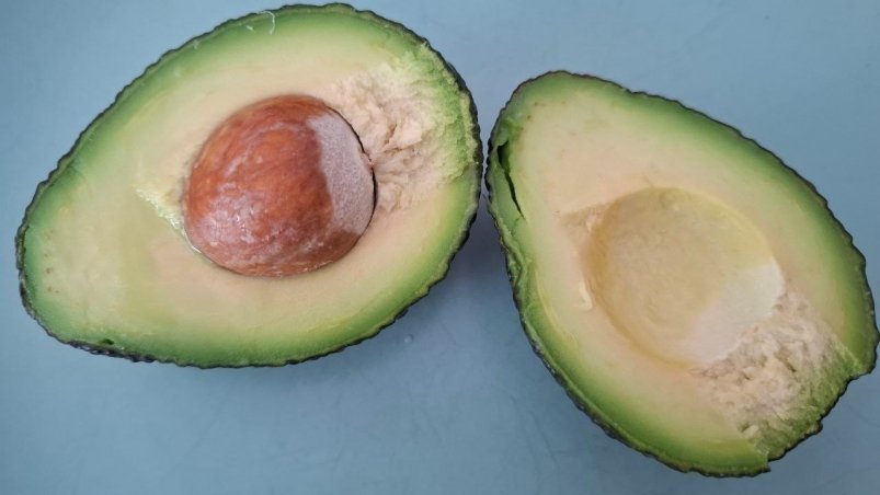 Проверьте плодоножку: у спелого авокадо она коричневая. Если фрукт слишком твёрдый, положите его на пару дней в пакет с яблоками или бананами — выделяемый ими этилен ускорит созревание без риска загнивания.