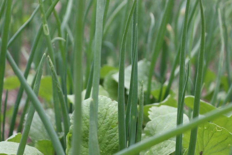 При выращивании в грунте лук можно подкармливать раз в две недели — например, настоем золы. Срезать перья лучше начинать с крайних, оставляя центральные для дальнейшего роста. Так одна луковица будет кормить семью несколько недель.