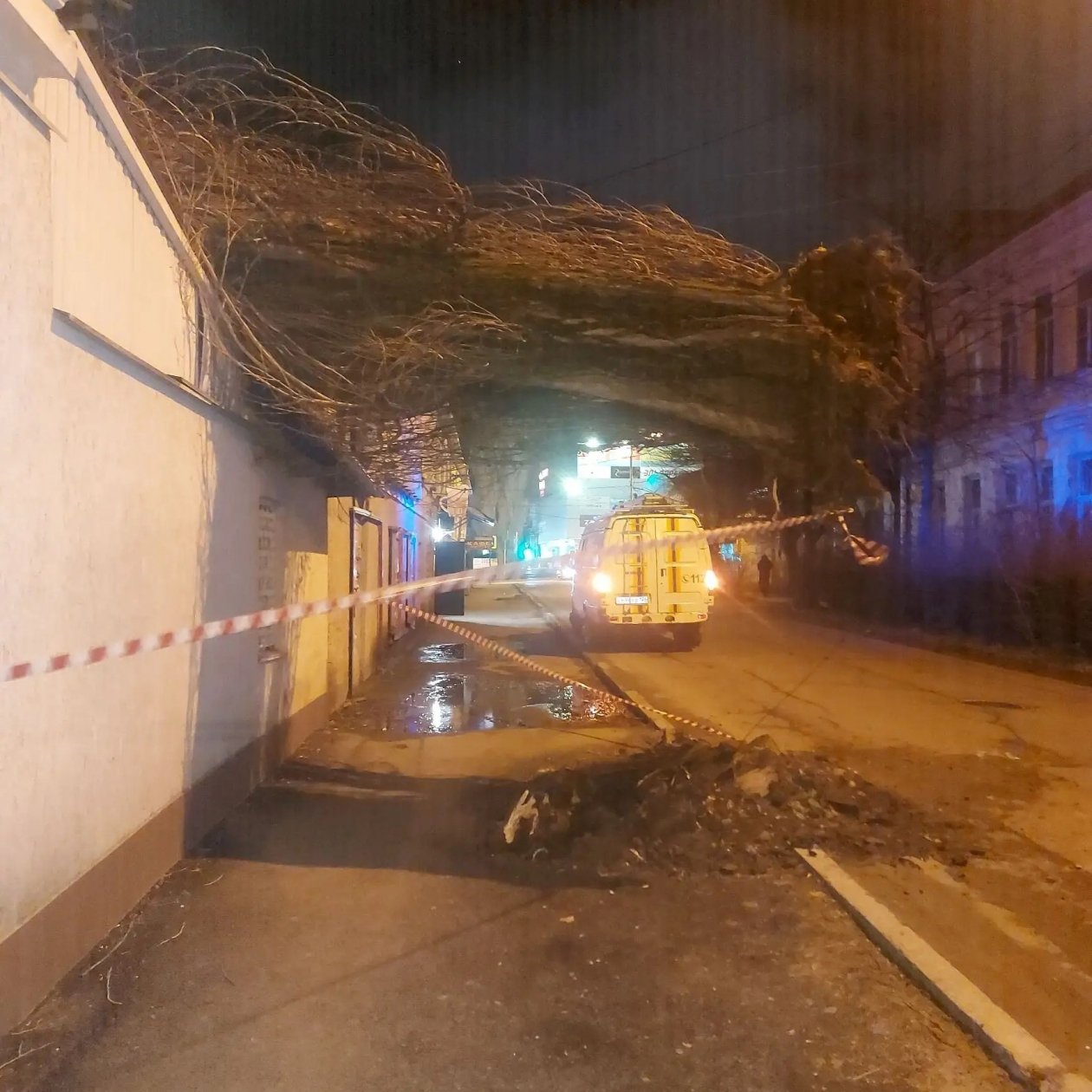 Сейчас специалисты убирают огромное дерево, которое упало прямо на одноэтажное здание на ул. Казачьей. Его вырвало с корнем. Кадрами с местами поделились очевидцы. Они также сообщили о летающих строительных материалах с крыши на Доваторцев,4, где до сих пор ведется капремонт кровли.