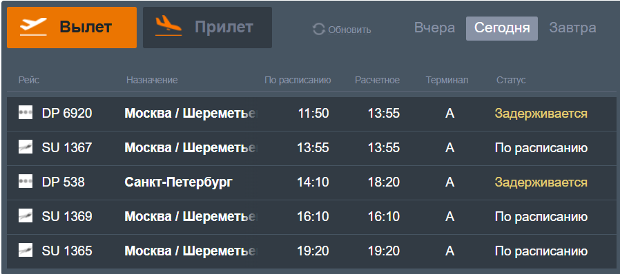 В аэропорт Ставрополя с опозданием выполняются четыре рейса: два на вылет — в Москву и Санкт-Петербург, и два на прилёт из этих же городов.