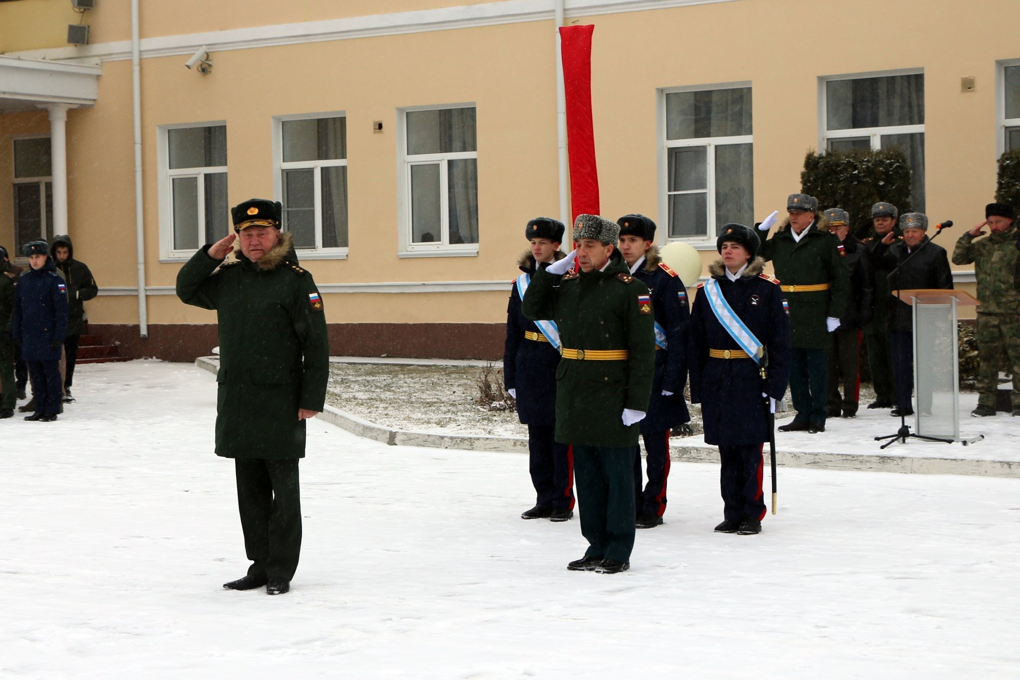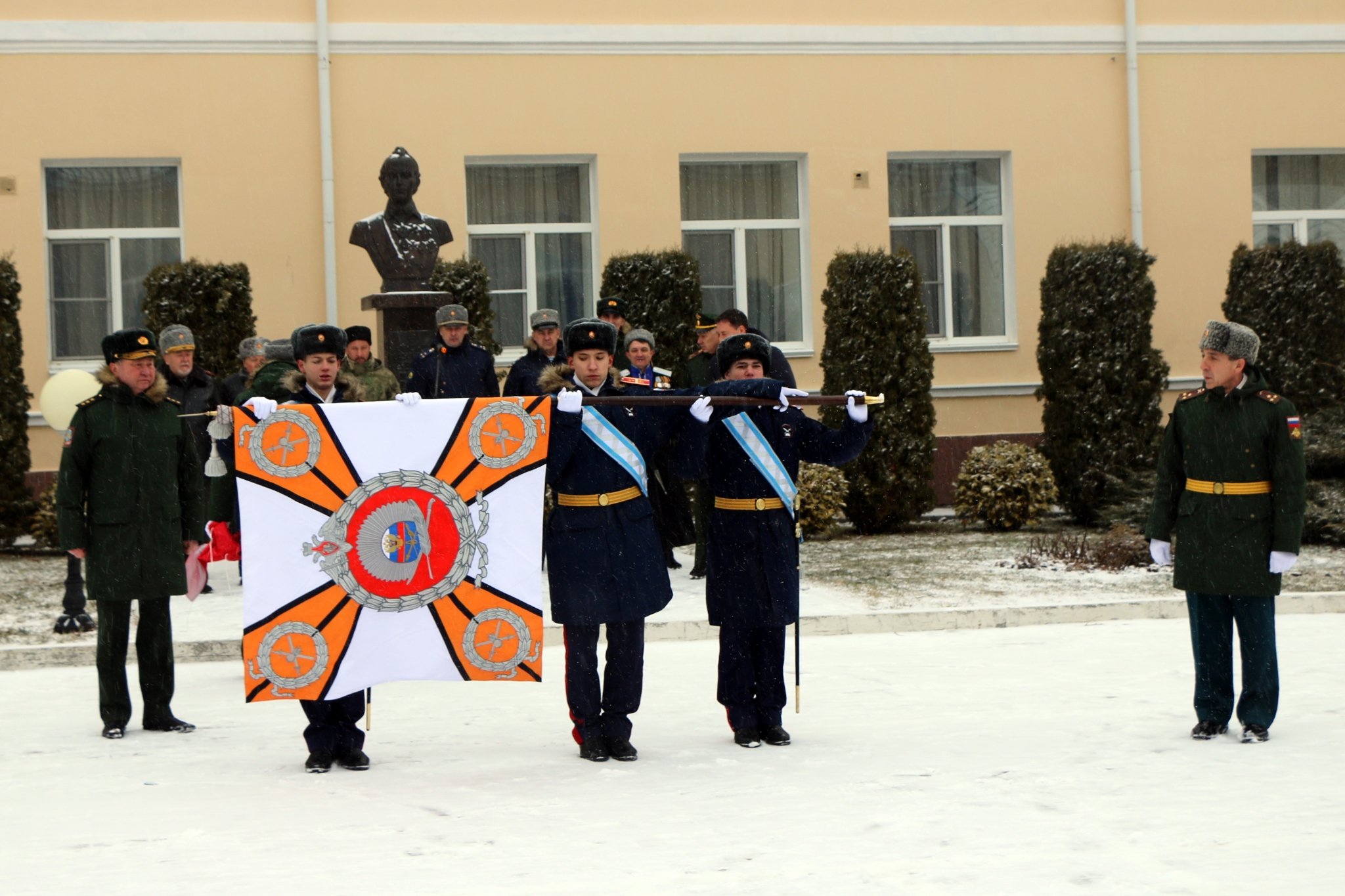 Право передать знамя предоставили заместителю главнокомандующего Сухопутными войсками по подготовке войск генерал-полковнику Алексею Авдееву.
