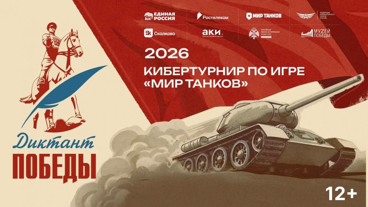 Началась регистрация на первый киберспортивный турнир (12+) по популярной онлайн-игре "Мир танков" (12+) , приуроченный к одноименной просветительской акции "Диктант Победы — 2026" (12+). Организаторы соревнования — "Ростелеком", партия "Единая России", Российское военно-историческое общество (РВИО), игровая студия "Леста", Федерация компьютерного спорта России (ФКС), Агентство креативных индустрий (АКИ) и фонд "Сколково". В 2025 году в "Диктанте Победы" приняли участие 2,75 млн человек из 97 стран мира.