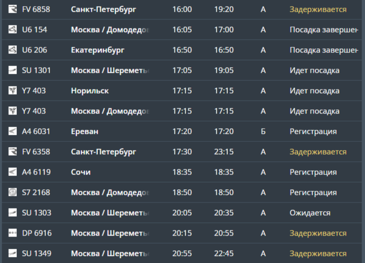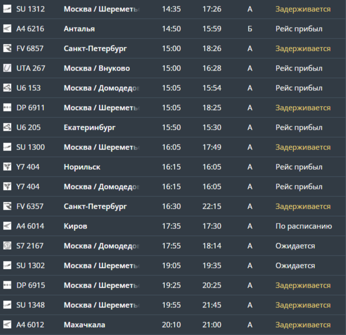 Кроме того, изменено расписание прилётов: позже ожидаются пять самолётов из Москвы и два — из Санкт-Петербурга.