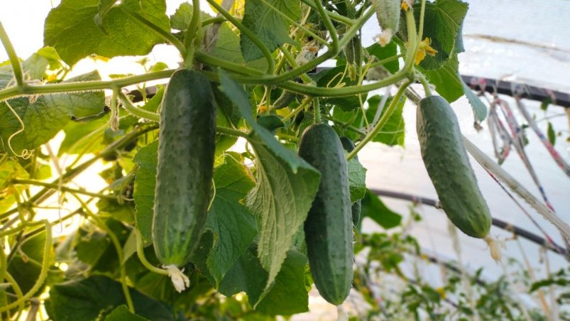 Кураж F1 — фаворит огородников. В одном узле завязывается до 6–8 огурцов. Гибрид теневыносливый, устойчив к болезням. Зозуля F1 хорош для ранних теплиц. Плоды длинные, гладкие, растут дружно. Для салатов идеален, а вот для засолки подходит меньше.