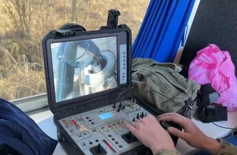 На кадрах также продемонстрировали работу по обезвреживанию второго самодельного взрывного устройства, которое содержало 1,5 кг пластичного взрывчатого вещества и электродетонатор иностранного производства. У него был исполнительный механизм на базе GSM-модуля с микрофоном, позволяющего контролировать акустическую обстановку.