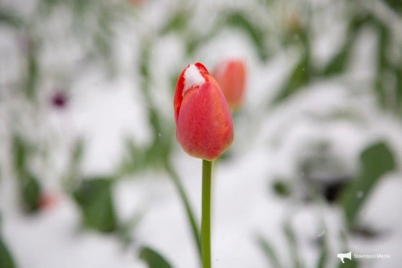 Тюльпаны в снегу: апрельский Ставрополь погрузился в зиму