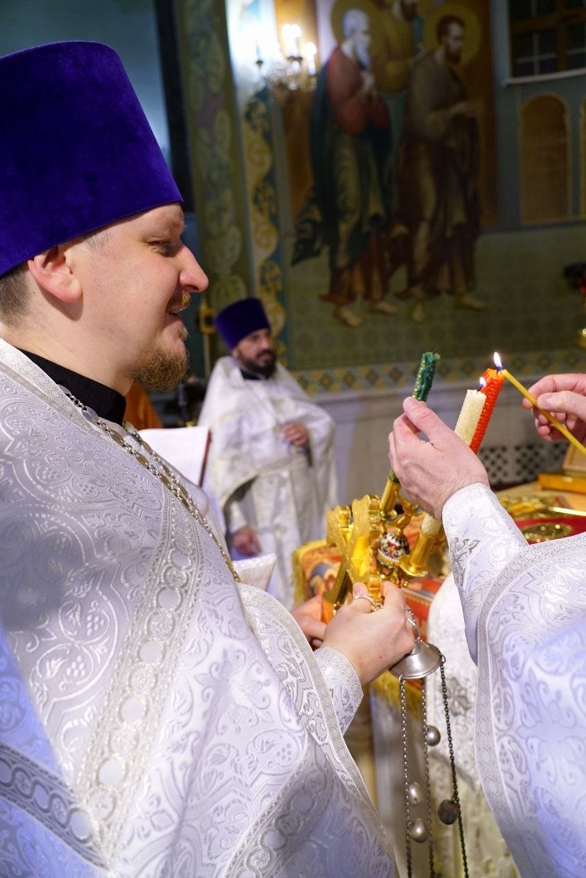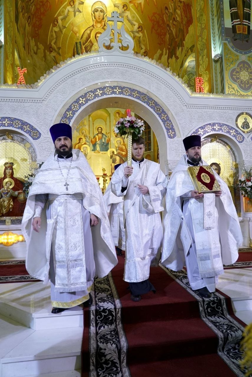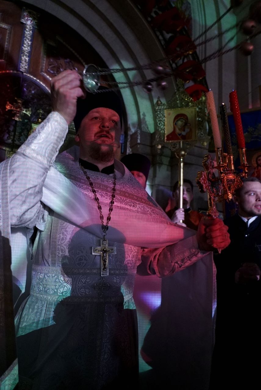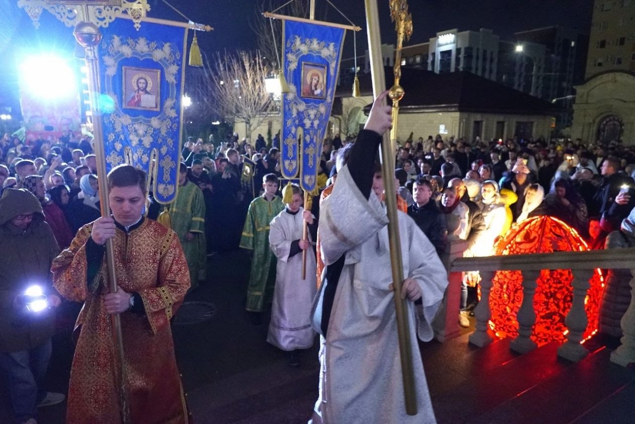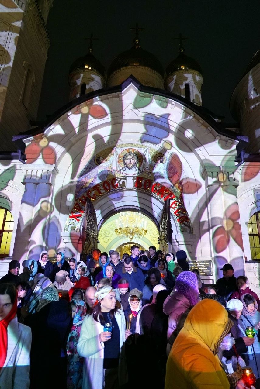 Его Высокопреосвященство Кирилл, митрополит Ставропольский и Невинномысский, совершил Пасхальную заутреню, перед которой состоялся крестный ход (6+). По традиции, Евангелие читали на греческом, латинском, еврейском и церковнославянском языках.
