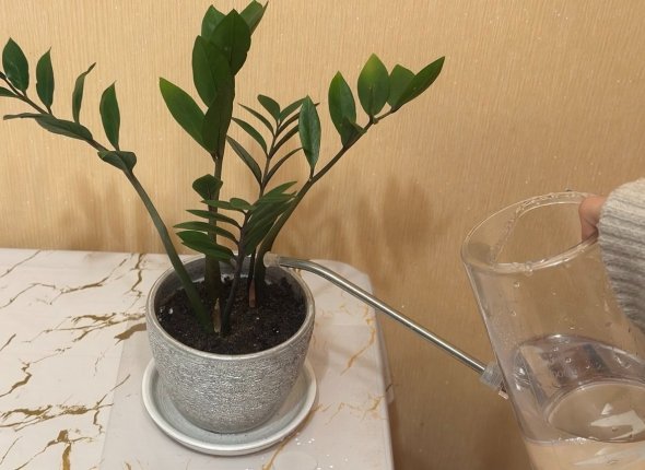 В феврале полив следует сокращать, но не прекращать полностью. Замиокулькас не любит излишней влаги, так как это может привести к гниению корней. Важно дать почве высохнуть между поливами. В среднем полив следует проводить раз в 2-3 недели, проверяя уровень влажности почвы. Если верхний слой грунта на ощупь сухой — можно полить, но не стоит делать это слишком обильно.