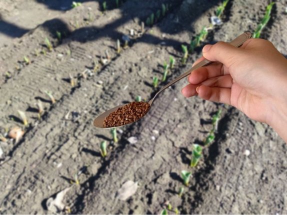 — Распределите 2 столовые ложки удобрения на каждый квадратный метр грядки.