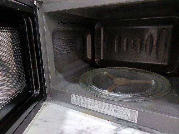 - Протрите стенки, поворотный столик и уплотнитель мягкой губкой, смоченной в оставшейся жидкости.
