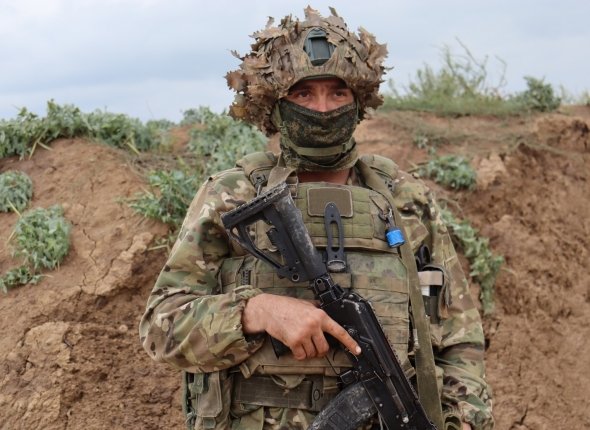 Мой собеседник — уроженец Крыма, мужчина средних лет, подтянутый, суховатый, с хрипловатым голосом, уверенным взглядом и коротким говорящим позывным "Пират". Его руки в ссадинах и царапинах привычным движением поправляют магазин в разгрузке, отливающей на солнце матовым оливковым металликом. С 2023 года разведчик выполняет задачи в зоне СВО, а сейчас вместе со своими товарищами находится на одном из полигонов боевой подготовки. Его подразделение выполняет задачи в островной зоне Днепра на херсонском направлении. Работа сложная, требующая от каждого военнослужащего разведгруппы внимательности, выносливости и отличной боевой выучки.