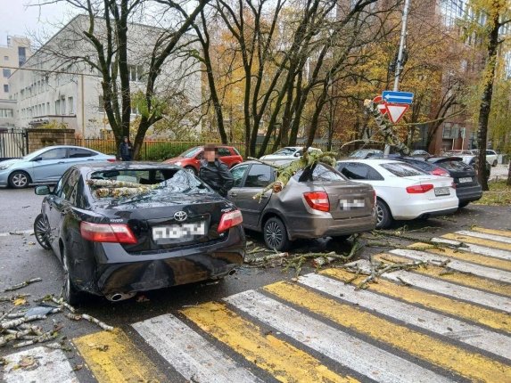 Судя по опубликованным кадрам с места в соцсетях, в одном автомобиле упавшими ветками выбило заднее стекло, другому удар пришелся на переднюю часть. Точное количество пострадавших машин неизвестно. Подробности уточняются.