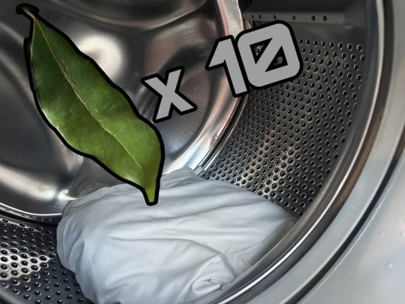 Возьмите 10 сухих лавровых листов и 2 столовые ложки пищевой соды. Поместите их в специальный сетчатый мешочек для стирки (чтобы частички не засоряли машину). Плотно завяжите мешочек и киньте его в барабан стиральной машины вместе с вещами. Запустите стандартный цикл стирки, подходящий для типа ткани.