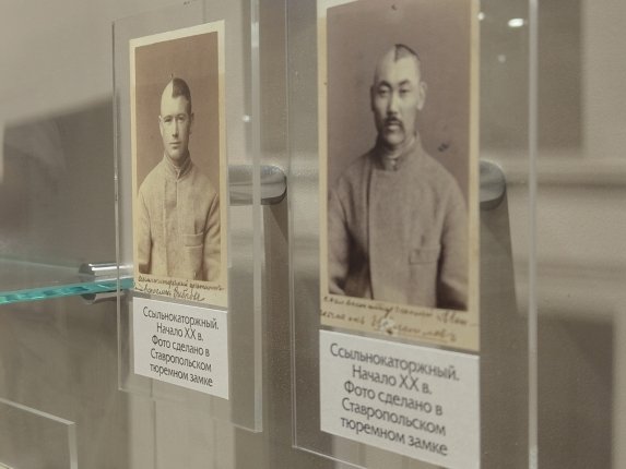 Привлекают внимание и фотографии ссыльнокаторжных, сделанные в Ставропольском тюремном замке в начале ХХ века. Голова у заключённых побрита ровно наполовину с одного бока.