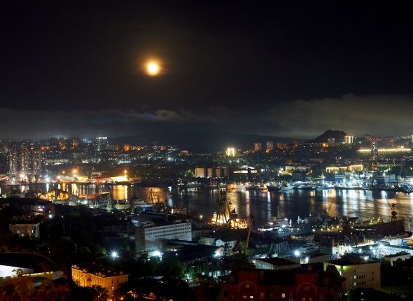 Луна, красная Луна, Луна над городом