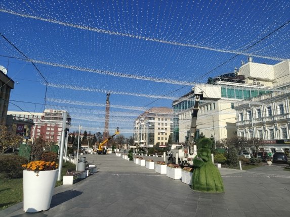 Stavropol.Media, 7 ноября. На "Звёздном небе" и светодиодных деревьях вешают новые гирлянды в центре Ставрополя. Работы активно идут на Александровской площади и на улице Дзержинского, сообщает с места событий корр. ИА Stavropol.Media.