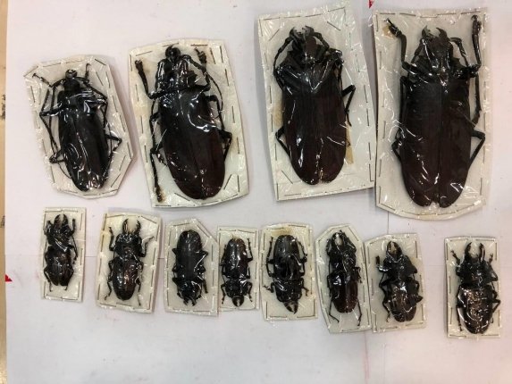 "Среди найденных образцов — крупнейший в мире ночной дровосек-титан из семейства усачей длиной почти 20 см, а также жуки-долгоносики и носороги из семейства пластинчатоусых", — уточняется в сообщении.