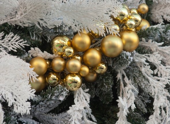 Зима, мороз, елка, новогодние украшения, новогодние шары, Новый год