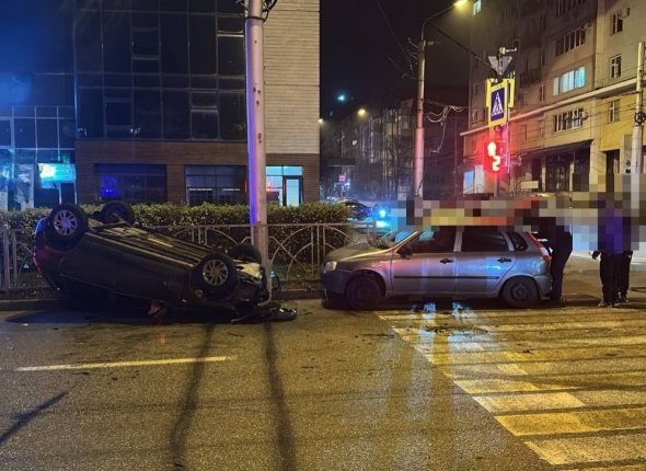 Машина перевернулась из-за проезда на красный свет светофора в Ставрополе