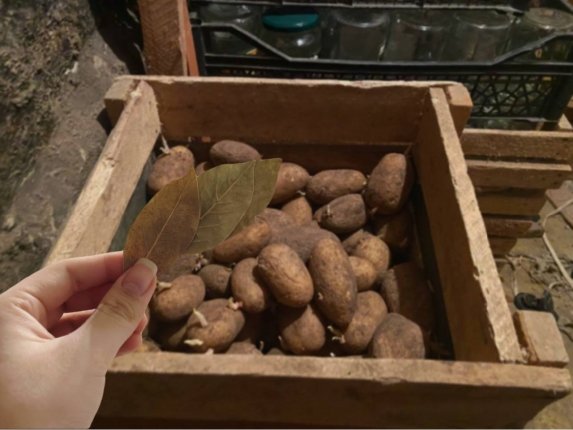 Самый простой метод — положить в ящик с картошкой два-три кислых яблока. Вещества, которые выделяет яблоко, замедляют рост картофеля. На мешок в 30–40 кг хватит двух средних яблок сверху. Картошка останется в хорошем состоянии до самой весны.