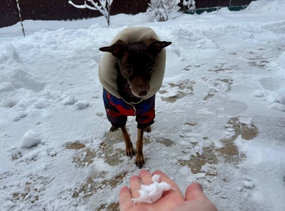 Stavropol.Media, 2 января. Житель Ставропольского края, той-терьер по кличке Тимоша, наконец-то дождался настоящей зимы. Как и в других регионах России, не было ни намека на снег. Однако в последние дни уходящего 2026 года на юге страны произошло настоящее волшебство.