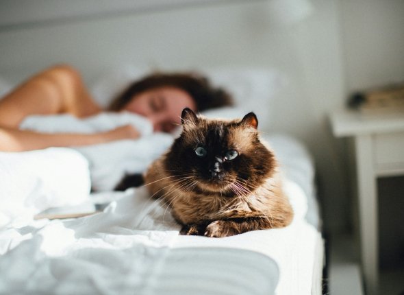 Ориентальная кошка. Одиночество для неё невыносимо, поэтому она будет следовать за избранником буквально по пятам. Обожает своего человека, остальные часто остаются просто фоном.