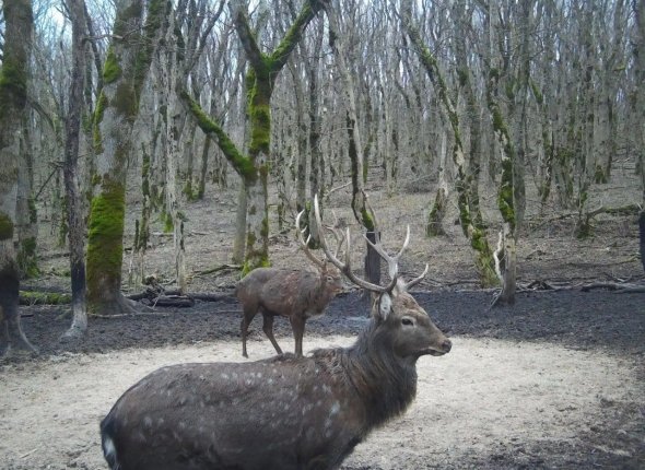 Пятнистые олени попали в объектив фотоловушки на Ставрополье. Фото: Минприроды Ставрополья