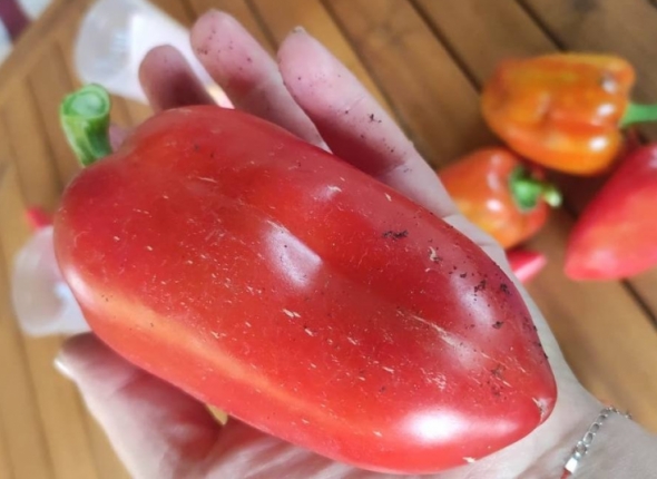 Голландский гибрид первого поколения. Растение среднерослое, компактное, высотой 60-90 см. Плоды имеют правильную кубовидную форму, глянцевую поверхность и массу 150-300 граммов. Толщина стенок также впечатляет — 6-8 мм, мякоть хрустящая, очень сладкая.